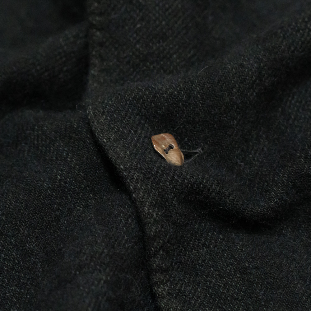 軽くも暖かい質感はニットのようなタッチの良さもあり、カーディガンの様にサッと羽織りやすい1着です。また、トップボタンまで留めるとワークジャケットのような雰囲気もあり、コートのインナーとしてもレイヤードしやすい印象です。