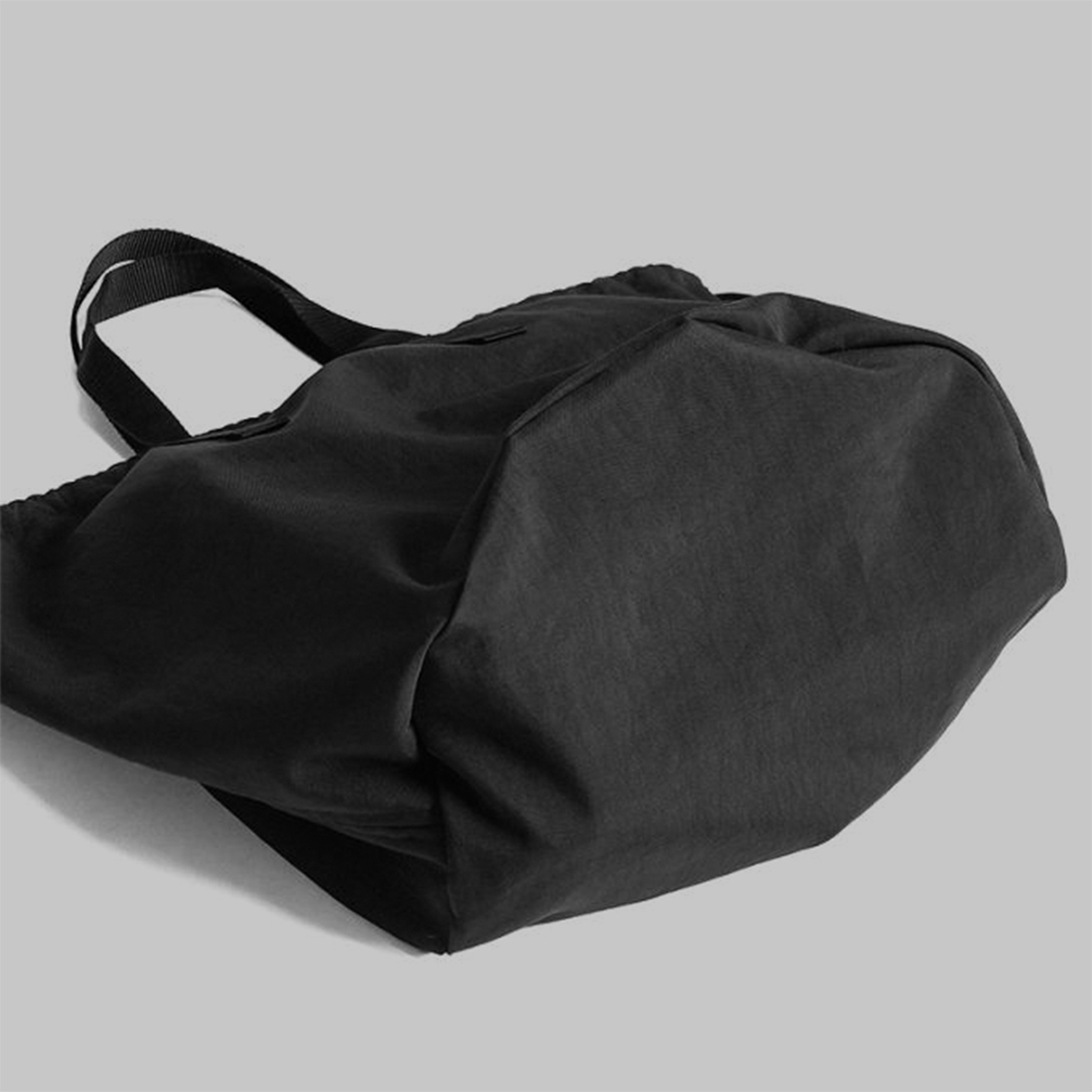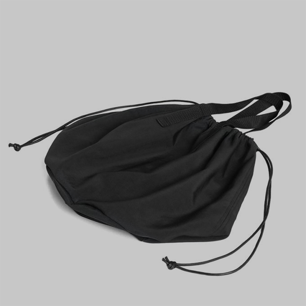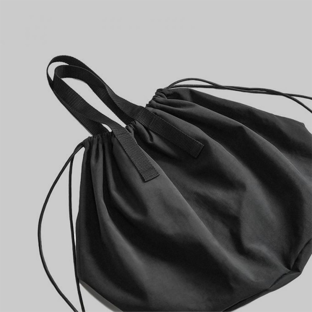 巾着タイプの鞄としては大きめのサイズ感と程よく抜け感のあるデザインで、様々なスタイリングや用途に活用することができます。