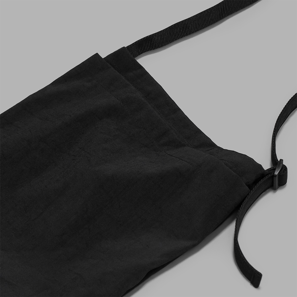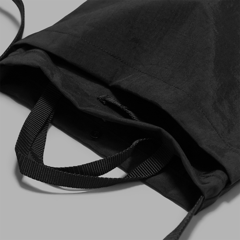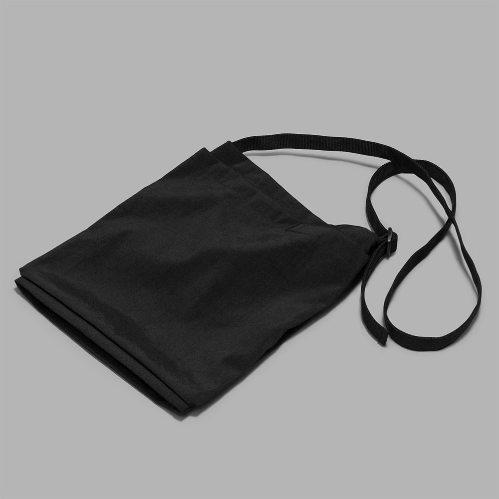 型は、アメリカ空軍のヘルメットバッグをモチーフにし、普段使いしやすいよう、タブレットも入る便利なハーフサイズで製作されています。ミニマルな印象ながらも、特徴的なフロントのポケットや、肩掛けと手持ちで使用できる仕様などを取り入れることで、より利便性の高いバックへと昇華させています。