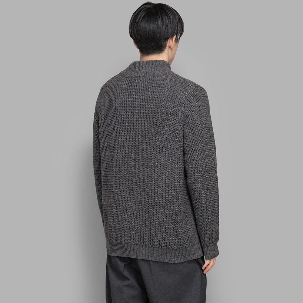 型はオーセンティックなフルジップの仕様に、ジップを閉めた際にもエレメントが見えないよう、気の利くデザインなのも特徴です。また、袖付けはセットインスリーブの仕様で、カーディガン感覚でサラッと羽織っていただけます。