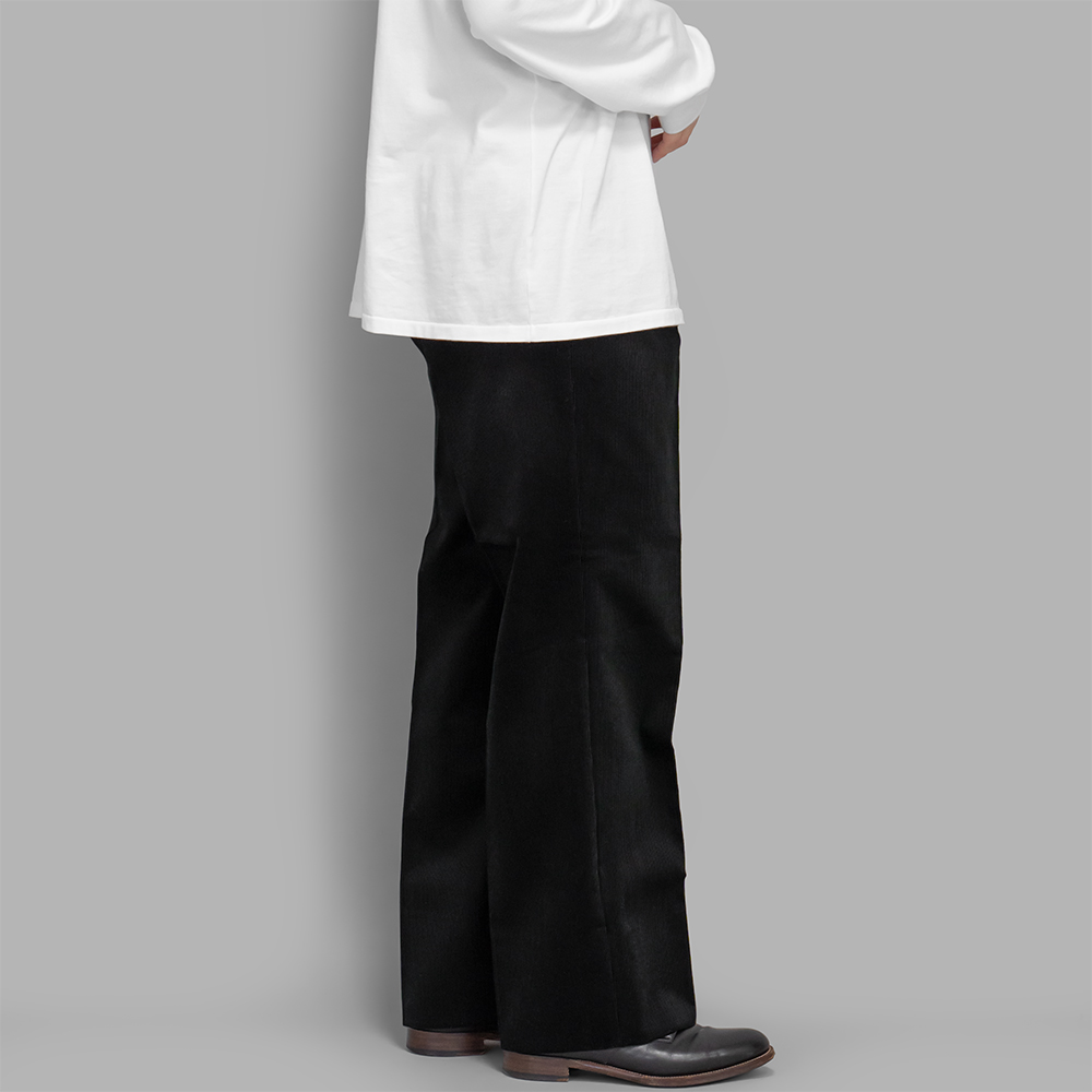 バランスの取れた同モデルのシルエットに、秋冬の衣服との馴染みが良いコーデュロイ素材を組み合わせることで、シーズン通して、様々なアイテムとの着こなしをお楽しみいただける万能な1本に仕上がっています。最初のクリースの入ったスラックスらしいきれいな面持ちも素敵ですが、洗いと着用を繰り返してクタッとした表情へ変化させるようにラフに取り扱うのもおすすめです。