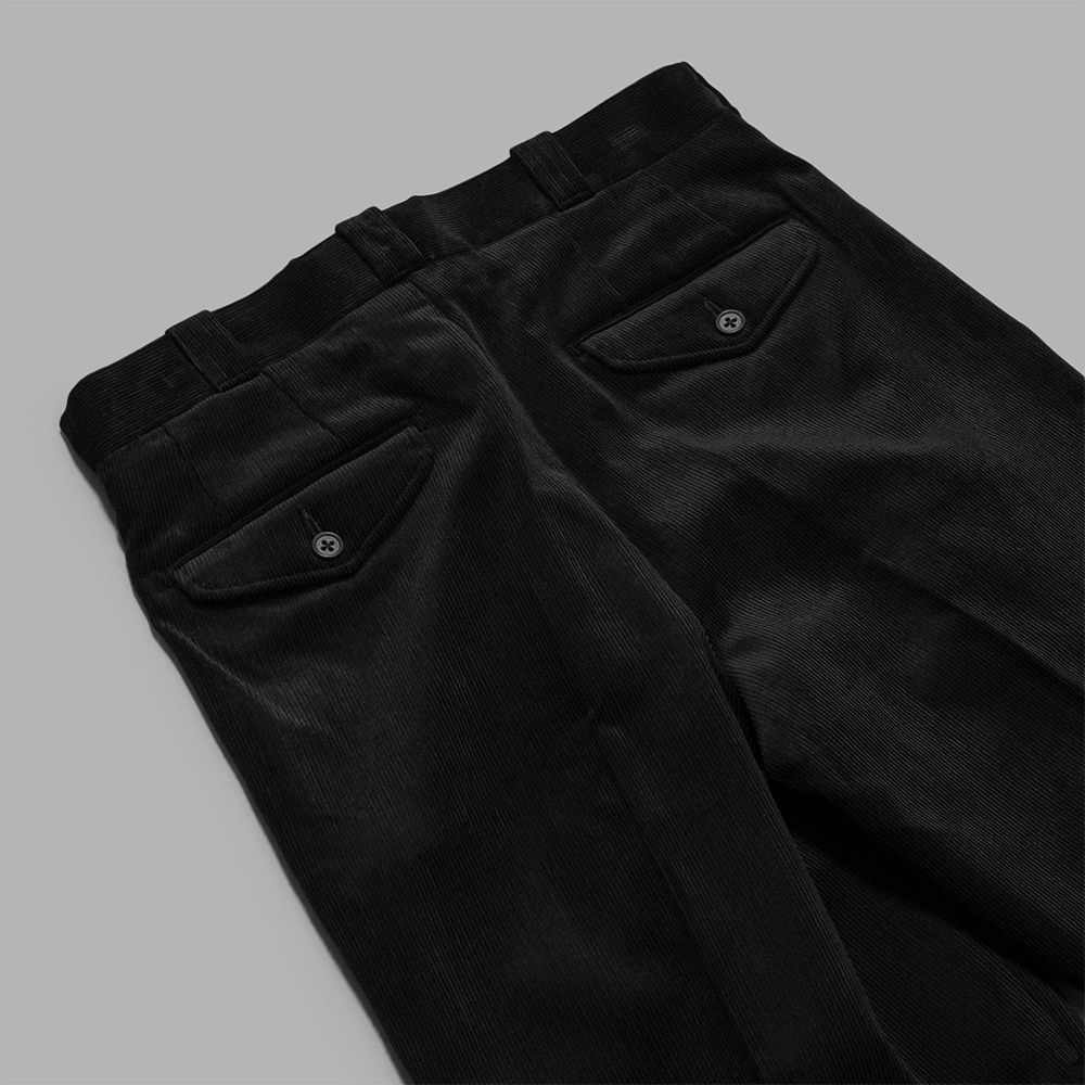 生地は、適度な太さを保ちながらも、スッキリとした綺麗なシルエットで履けるよう、英国の老舗テキスタイルメーカーが手がけるコシのあるコーデュロイ素材を使用しています。