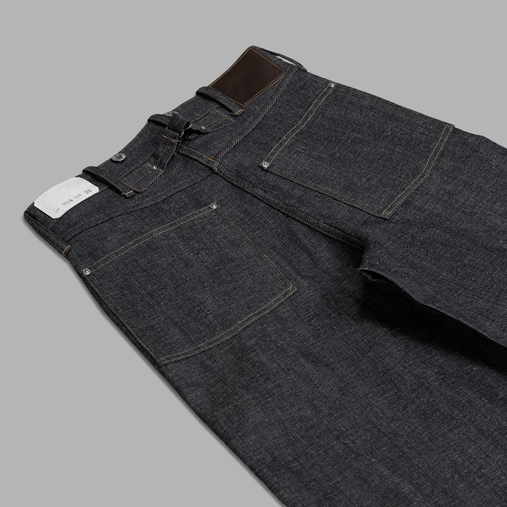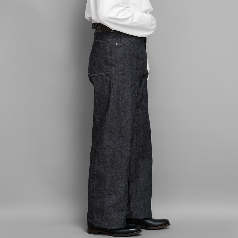 Taiga Takahashiのアイコニックアイテムでもある1920'sデニムトラウザーズ。髙橋大雅はリーバイスよりもストア系と呼ばれるブランドのデニムが好きだった。特にForemost というブランドを展開していた J.C.Penny。1920年代にリーバイスを真似たデニムを作り始め、徐々にオリジナリティを持ったデザインが展開されていった。それらのデニムを蒐集し、彼らが試行錯誤してリーバイスと差別化を図るかという意志を、ディテールの随所に感じ、その意思を引き継ぎ、 同ブランドのオリジナルデニムが誕生しました。