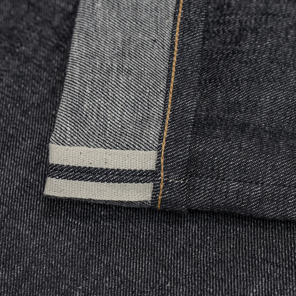 生地は米国産オーガニックコットンを使用し、岡山にある旧式力織機で織り上げた3/1 左綾、ライトオンスデニム。現代の織機の10 ~ 20 分の1という低速度でしか織ることができないシャトル織機とも呼ばれる旧式力織機でゆっくりと織り上げたデニム生地は、綿糸本来の凹凸が残り、程よいムラ感が生まれています。