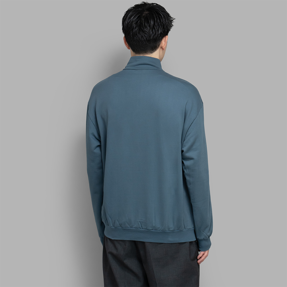 AURALEE/ Elastic High Gauge Sweat Half Zip P/O (Dusty Blue)