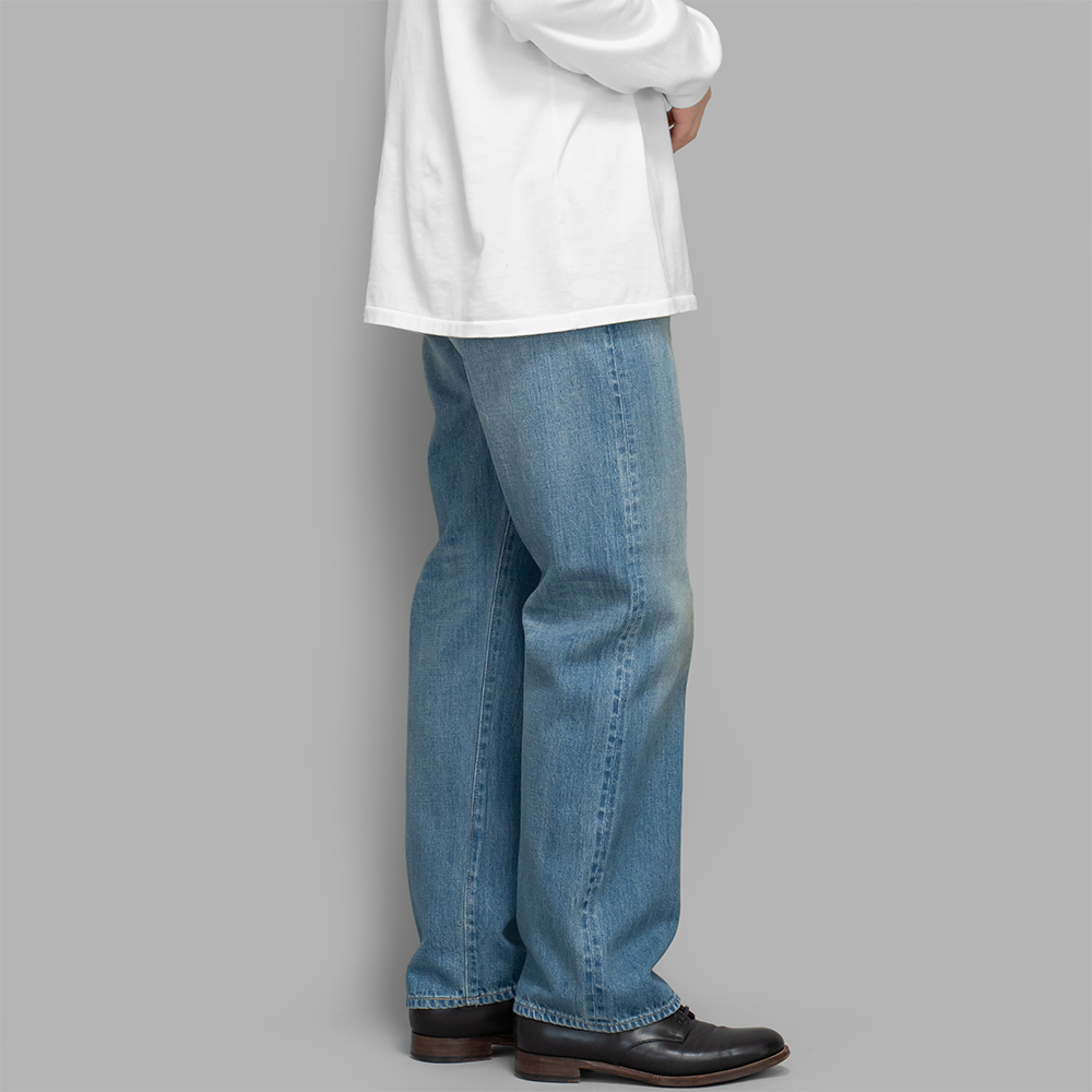 当時の背景から生まれた201モデルの特性を見事に再現し、シルエットにアレンジを加えることで、履き心地の良さも兼ね備えた理想的なヴィンテージデニムに仕上げています。程良いワイドシルエットは、スタイリングにおける汎用性が高く、軽いオンス感は気温が高い時期でもストレス無く着用することができます。ファッションとしてのヴィンテージを意識した同ブランドならではの1本です。