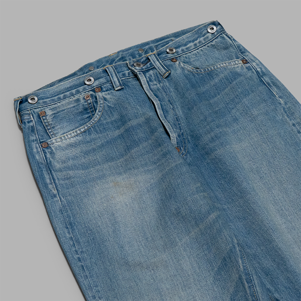 LEVI'S501のセカンドラインとして1890~1940年頃まで生産されていたLot.201をベースにしたモデルです。通称「No.2 デニム」として知られるこのモデルは、肉厚で特濃のインディゴを使用したXXデニムに比べ、糸にムラが多く、織り密度も甘かったため、比較的ライトウエイトで穿き易く、色落ちの表情が出易い点が魅力です。
