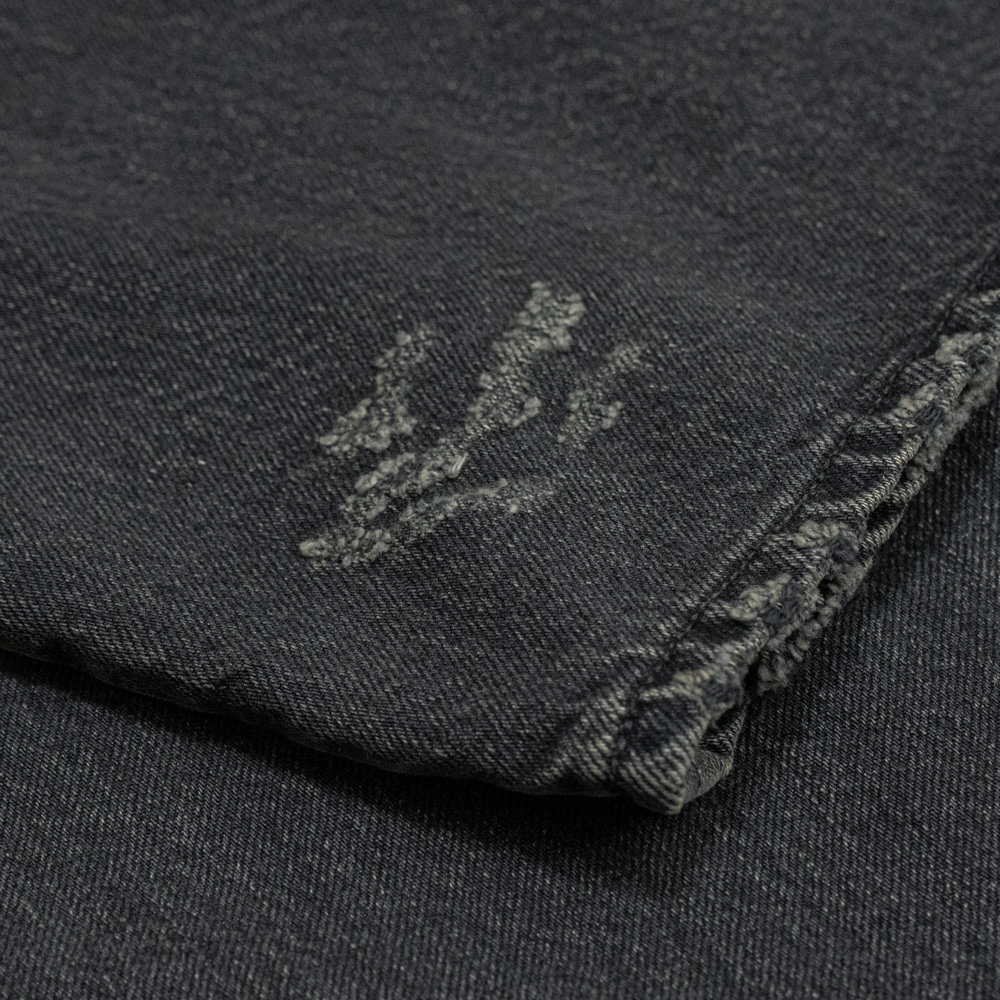 素材は、ハリと肉厚感がありつつも、オールシーズン穿きやすい程よい厚みが特徴の13ozのムラ糸を使用したデニム生地を使用しています。様々な加工を施すことで、奥行きのあるデニムの表情に仕上げており、ベルトループから縫製箇所まで細かくダメージ加工が施されているのも魅力の一つです。