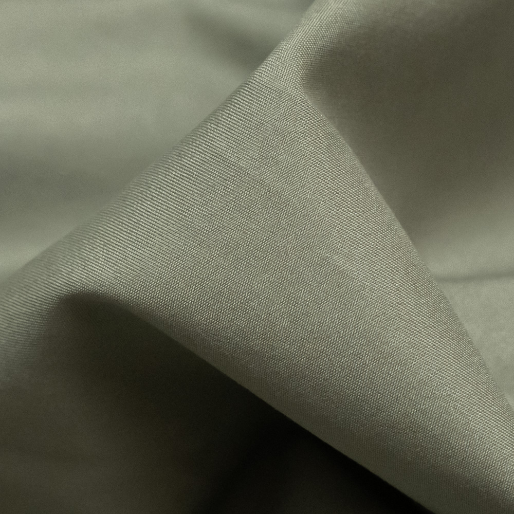 エジプトの超長綿であるフィンクスコットンを細番手に紡績し、しっかりと高密度に織り上げたツイル素材を使用しています。加工で生地を硬直させた後、何度も生地を叩いて揉み洗いする加工を施し、柔らかな風合いに仕上げています。シルクのようなしなやかな肌触りと上品な光沢が特徴の生地です。