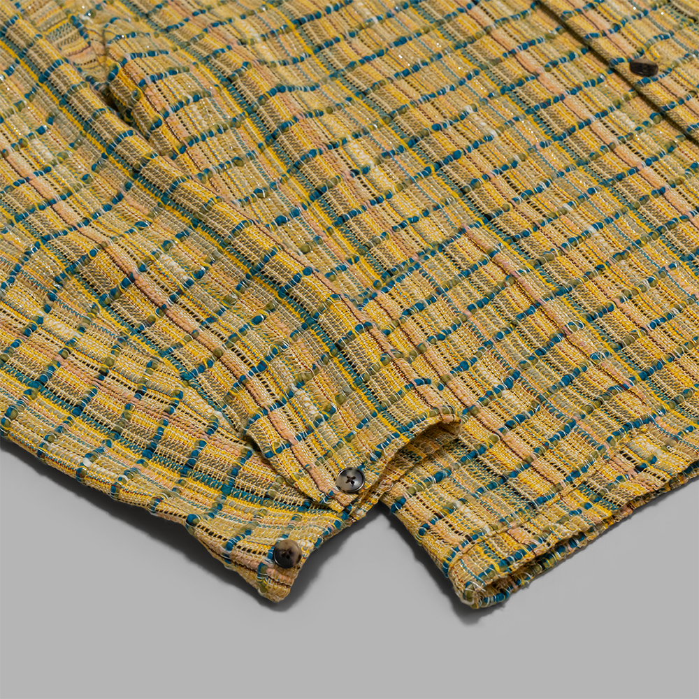 型はフランスのワークカバーオールからインスピレーションを受けデザインされた、ボックスシルエットのシャツジャケットです。裏地は付かない一重の仕様で、軽い着心地に仕立てています。前面には3つのパッチポケットを配し、柄を合わせた丁寧な仕立てもポイントです。