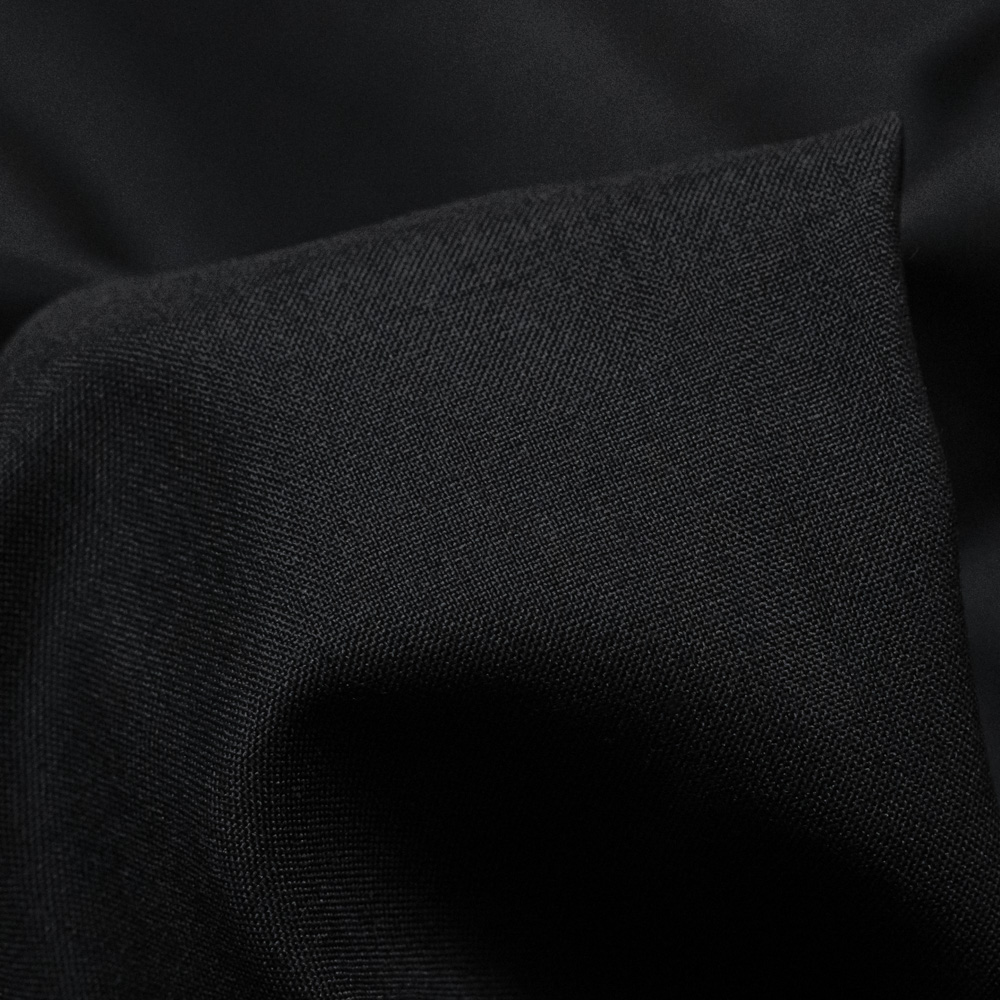 素材は、日本最大の毛織物の産地である尾州にて、紡績されたウールを使用しています。細番手の糸を高密度に平織りした素材は、ウール独特の光沢感とハリ感があり、仕上げに特殊な加工を施すことで、シワになりにくく、自宅でのお手入れも簡単にできる生地となっています。