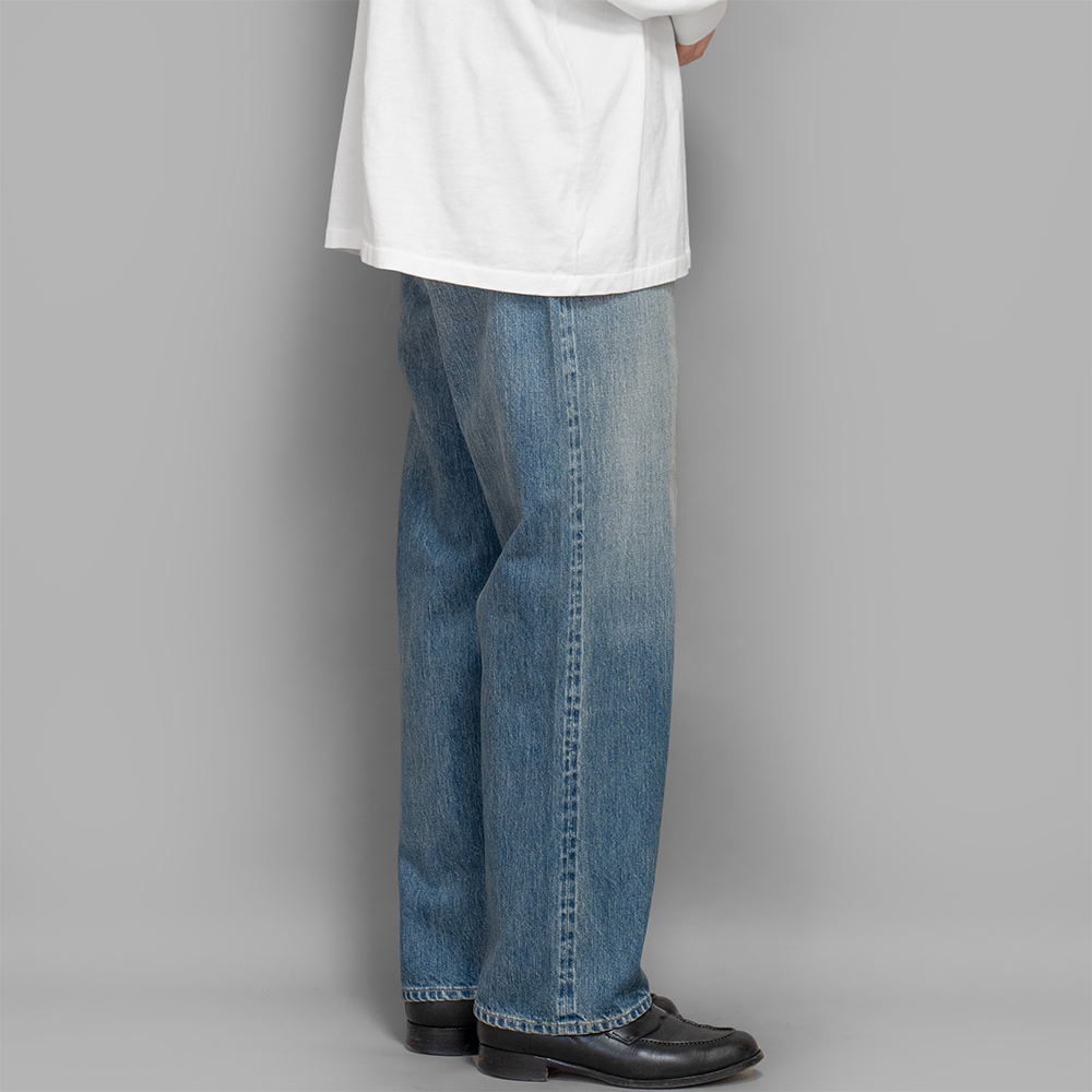 加工はヴィンテージでは中々お目にかかれない、程よく濃さが残った、グッドコンディションのヴィンテージを忠実に再現しています。後年のモデルに比べると、ゆったりしたシルエットで作られているため、ワイドテーパードのチノやスラックスのような感覚で、スタイリングできます。アンティークレベルの古いモデルがベースではありますが、現代のファッションにも調和する1本と言えます。