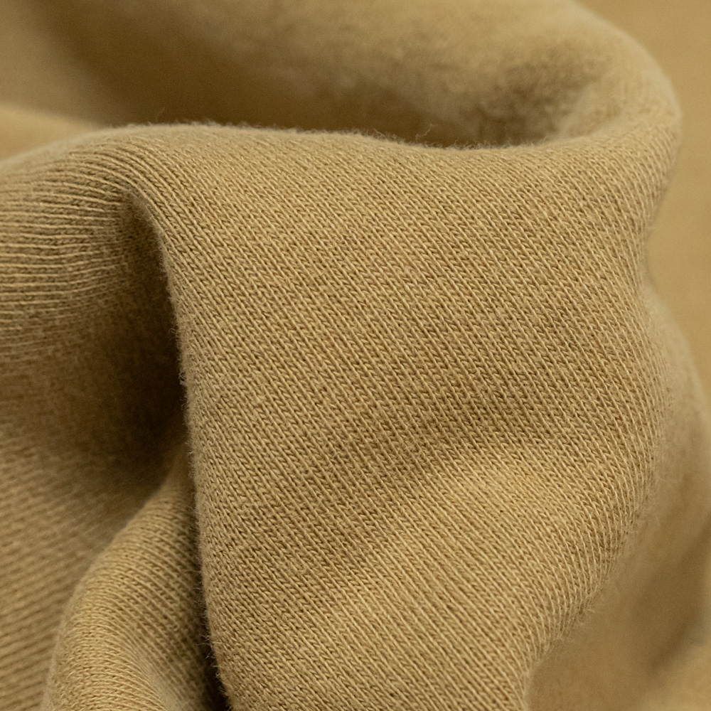 表地はヴィンテージを解析して作った吊り裏毛です。1時間に1メートルというゆっくりとしたスピードでしか編み立てられない分、糸に余計な負荷を掛けないで編み上げることができるため、肉厚ながら固くならず、ふっくらとした風合いに仕上がります。
