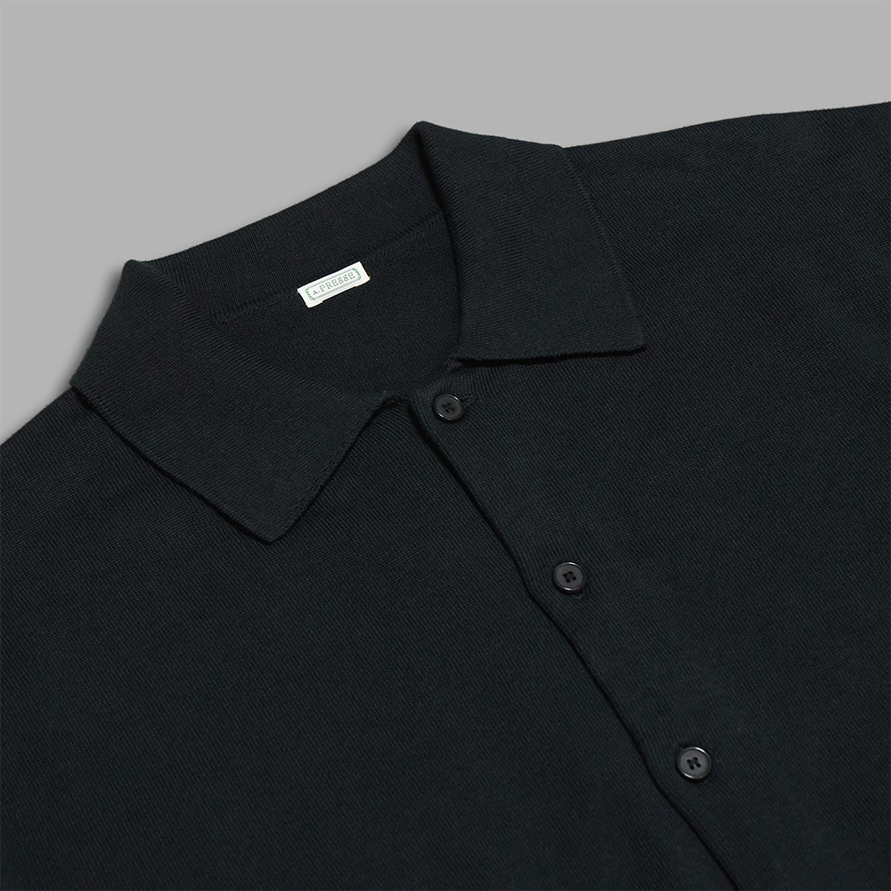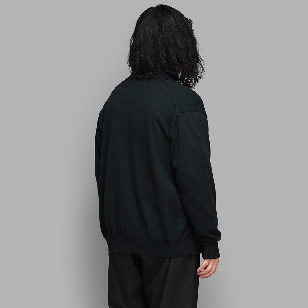 A.PRESSE / Cotton Knit Polo Collar Cardigan (Black)