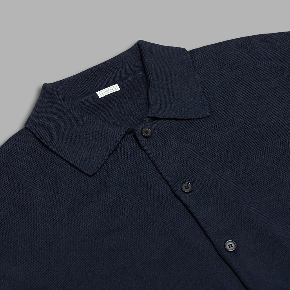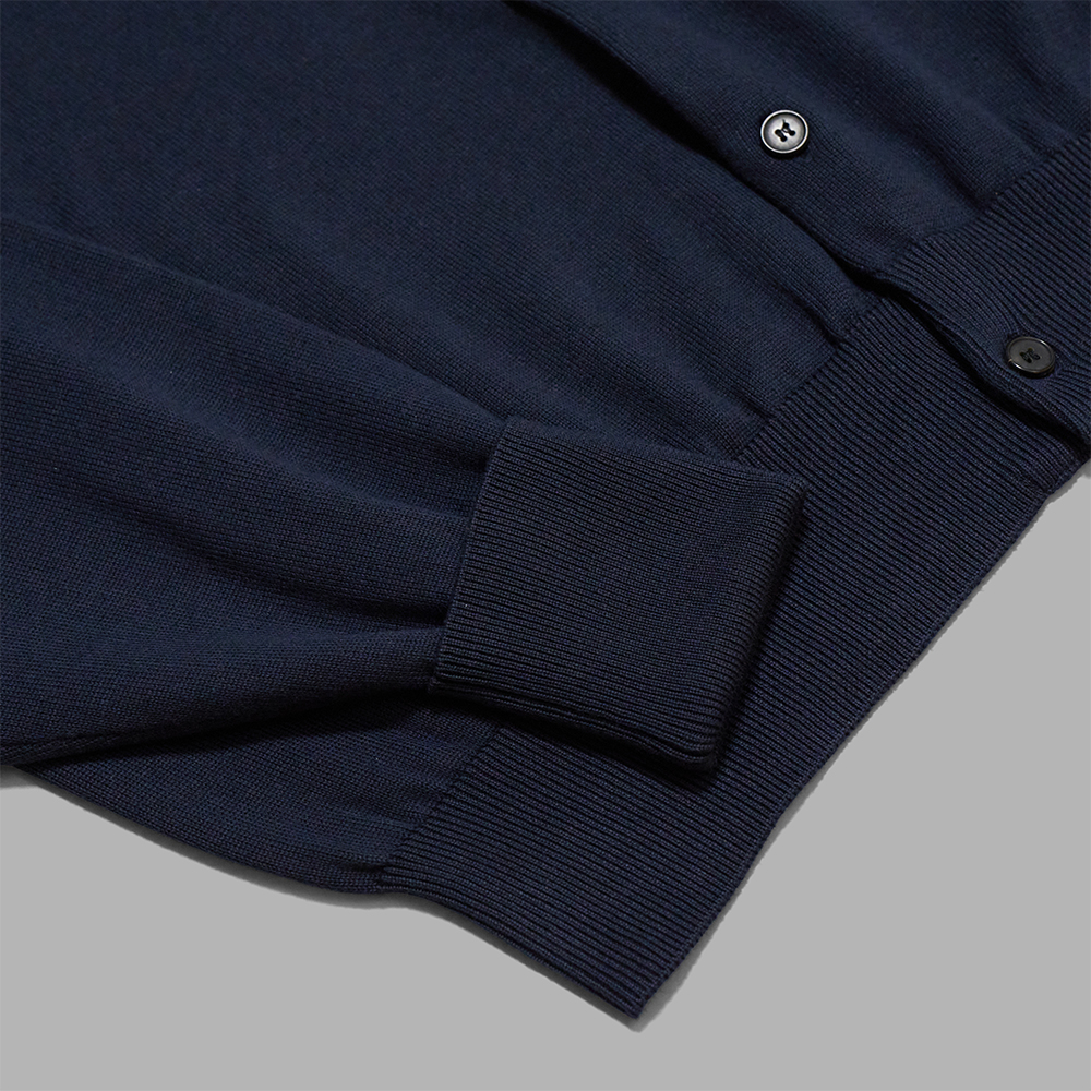 A.PRESSE / Cotton Knit Polo Collar Cardigan (Navy)