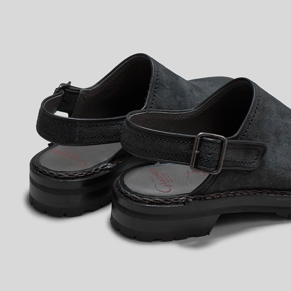 スクエアトゥのデザインが目を惹くFG479は、ストラップベルトに指を掛けて足入れ出来る気軽さに、ノルベジェーゼ製法ならではのステッチデザイン、ボリュームのあるVibram社のラグソールを組み合わせた高いデザイン性を感じるサンダルです。