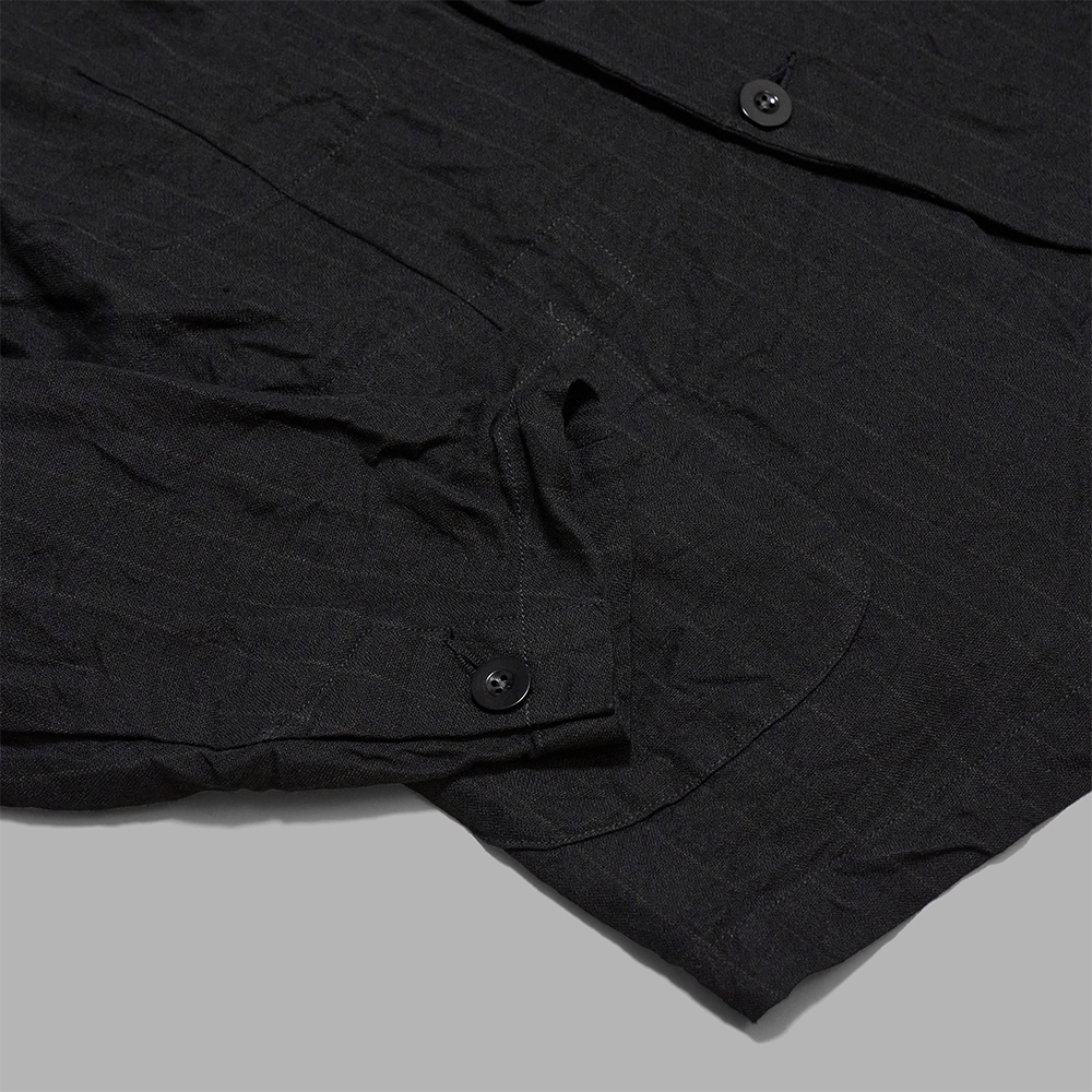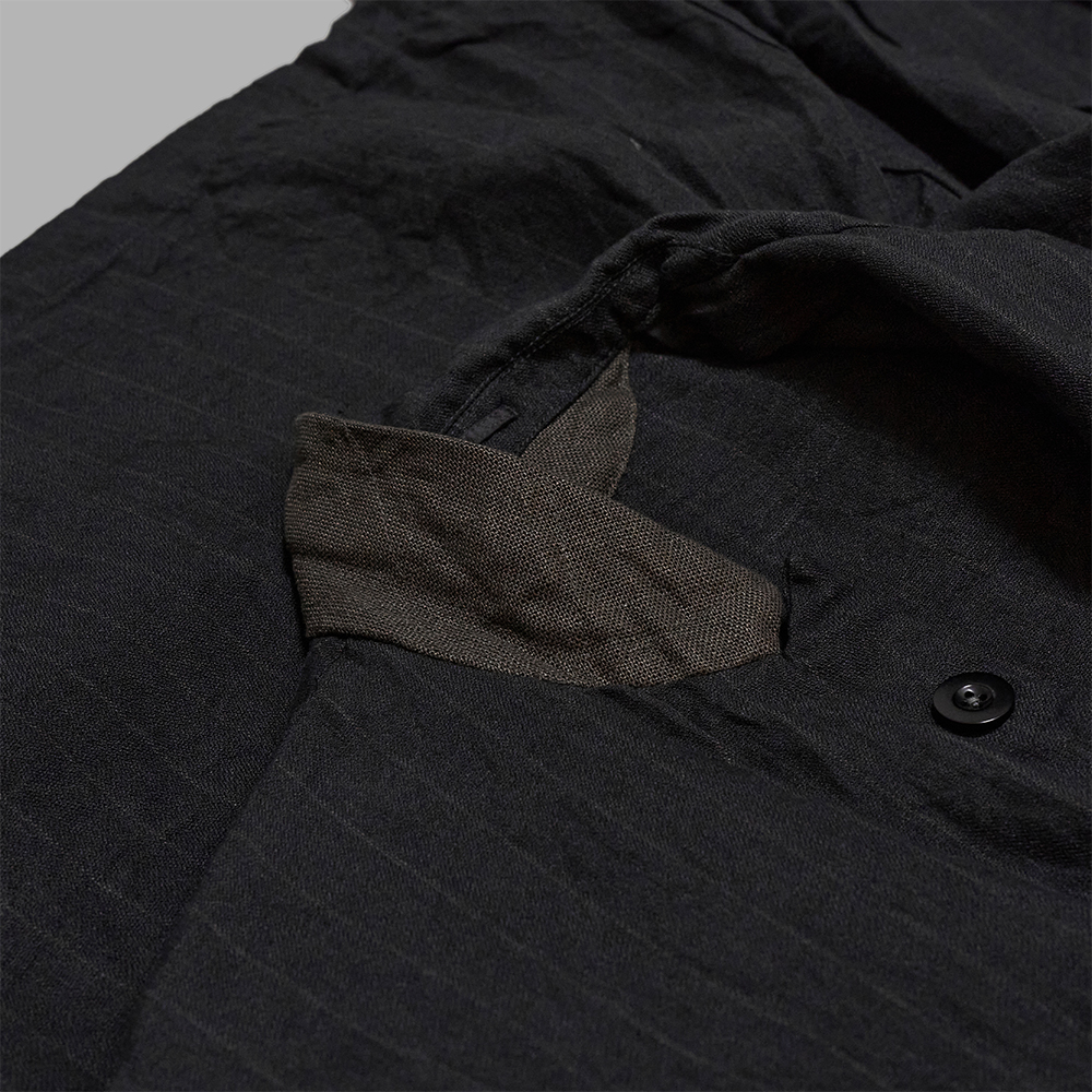 クラシカルな雰囲気を纏ったアイテムですが、製品加工を加えることで、リネン特有の柔らかな風合いを兼ね備えたアイテムに仕上がっており、シャツジャケット感覚で羽織りやすいのも特徴の一つです。同素材のボトムスも展開されており、セットアップでのコーディネートもお勧めです。