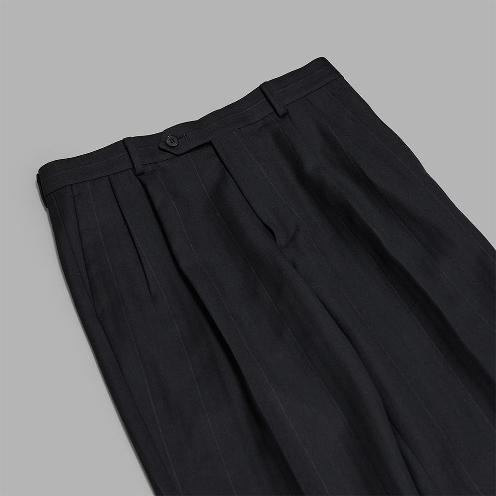 AURALEE / Bluefaced Wool Two-Tuck Slacks (Charcoal Navy Stripe)