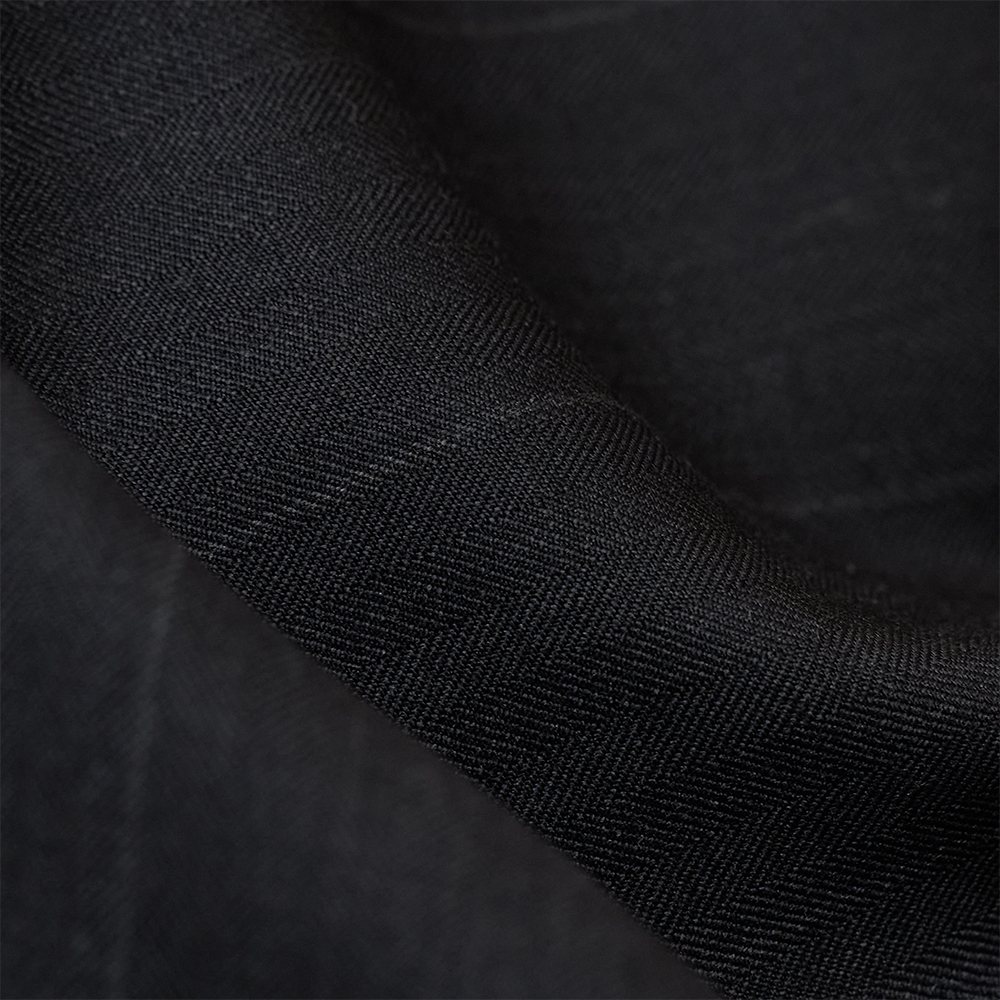 経糸にはスーパー130'sのスーパーエキストラファインメリノを、緯糸には英国羊毛ブルーフェイスラスター種のウールを使用した贅沢な素材を使用しています。ブルーフェイス特有のふくらみと程よい反発性に、スーパーエキストラファインメリノの極上の滑らかさを組み合わせることで、豊かな質感と肌触りを実現しています。