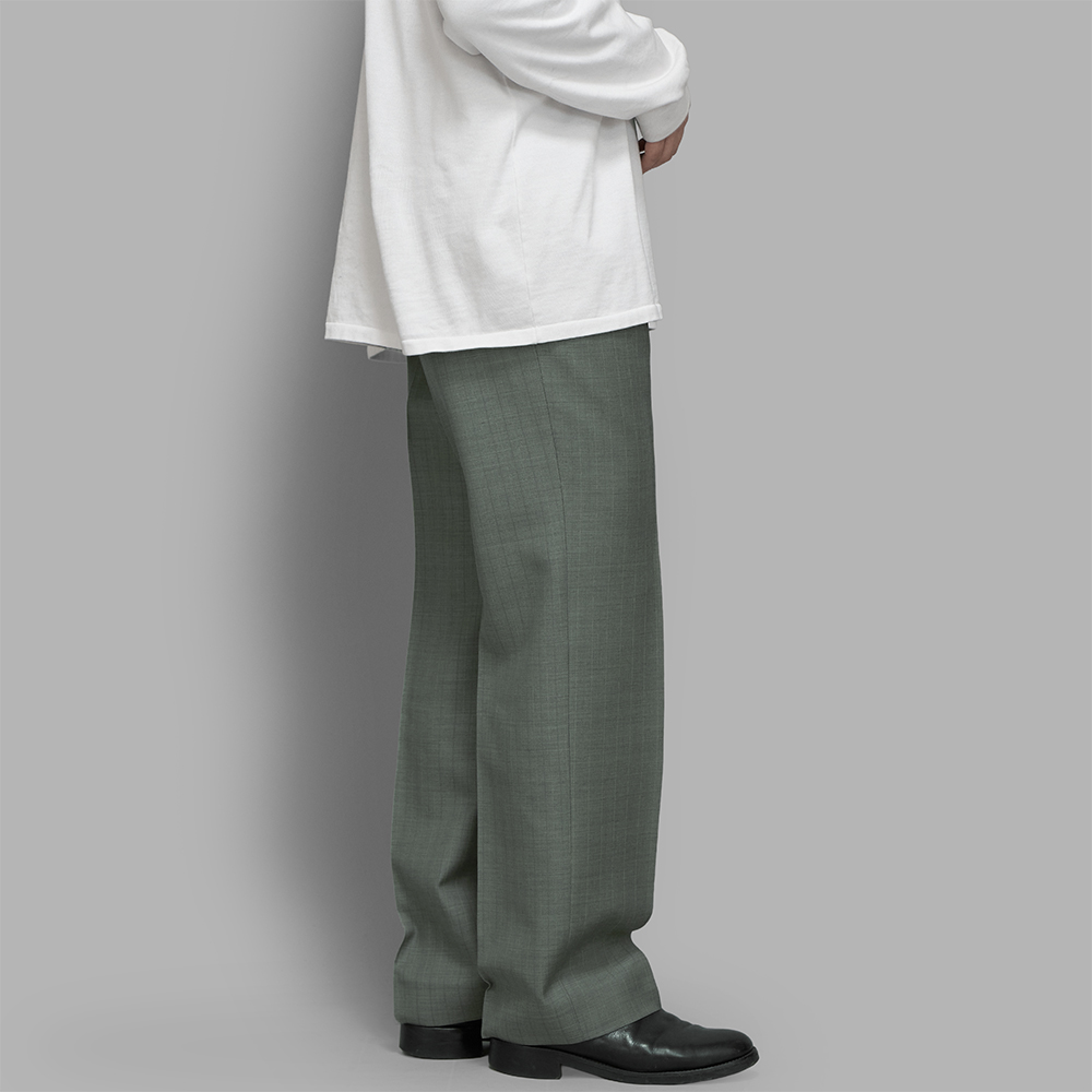 AURALEE / Bluefaced Wool Two-Tuck Slacks (Khaki Gray Stripe)