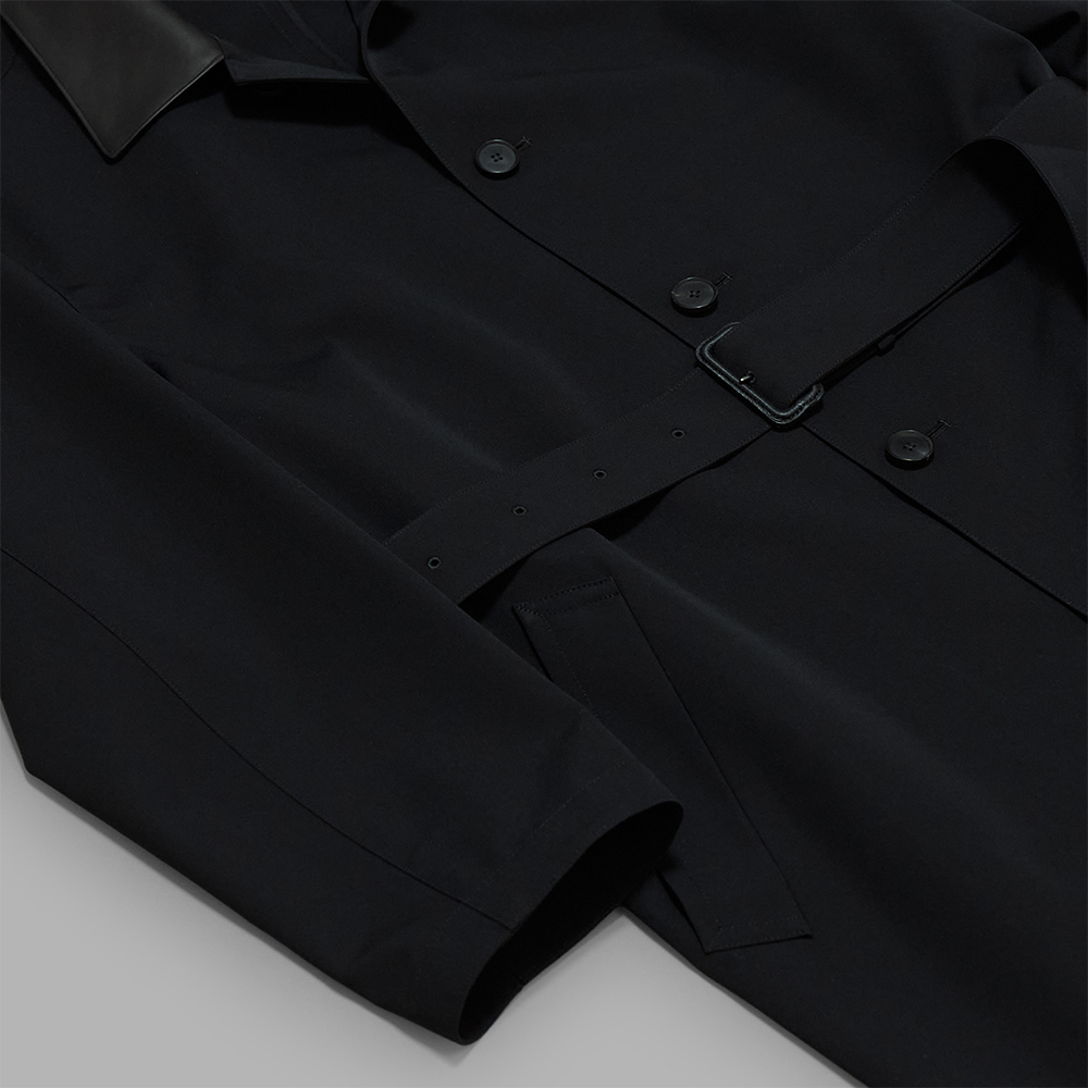ミニマルなデザインで製作されていますが、構築的なフォルムを際立たせる、上質で端正な素材、レザーを使用することで、同ブランドらしいミニマルながらも存在感のあるアイテムに仕上がっています。また、膝下まであるロングコートはスタイリングに取り入れることで、Iラインシルエットが強調され、雰囲気のあるスタイリングをお楽しみいただけます。