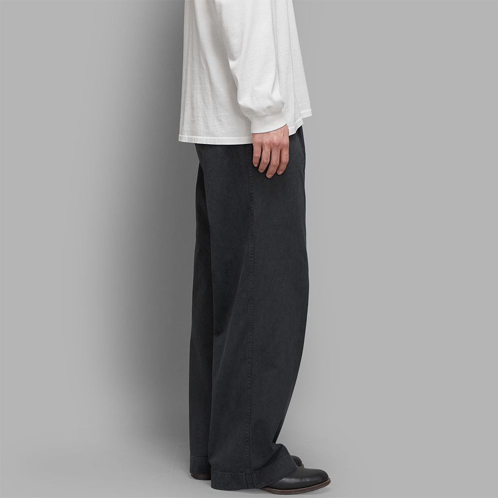 AURALEE / Garment-Dyed Finx Light Chino One-Tuck Wide Pants (Black)