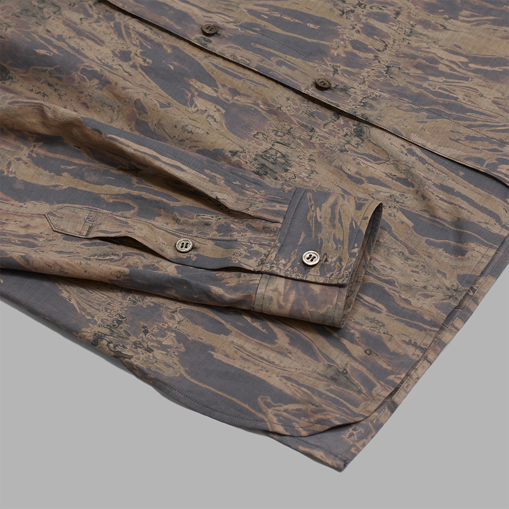 山内の流し染めコットンキュプラツイルシャツです。