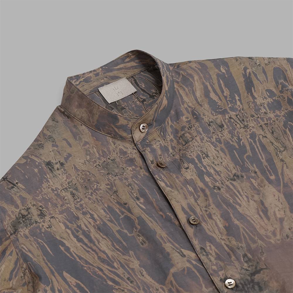 1着1着仕立てる山内にしか出来ない量産方法が、この絞り柄の洋服を実現し、素晴らしい伝統工芸品である有松絞りの美しさが表現された1着です。全体的に落ち着いたトーンの色合いで構成されているため、コーディネートに違和感なく取り入れることができます。単体での着こなしは勿論、ジャケットやブルゾンのインナーにも重宝します。