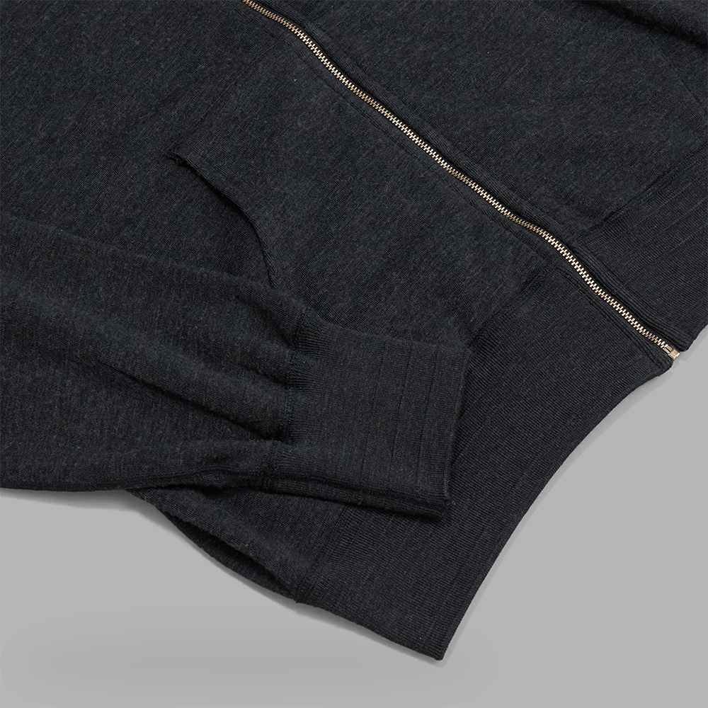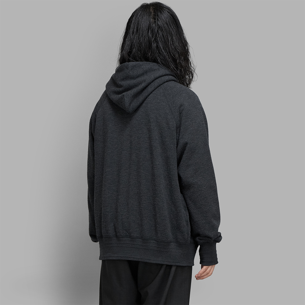 ウールとコットン混紡されたジャージー素材を使用しています。“スーパーウール”と名付けられた同素材は、なめらかでとろみのあるタッチ感が特徴的で、表面は奥行きのある表情を持たせ、裏面にはミニパイルのような組織で格別な肌触りの良さを実現しています。