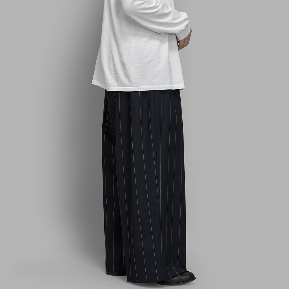POSTELEGANT / Wool Ex Wide Trousers (Navy Stripe)
