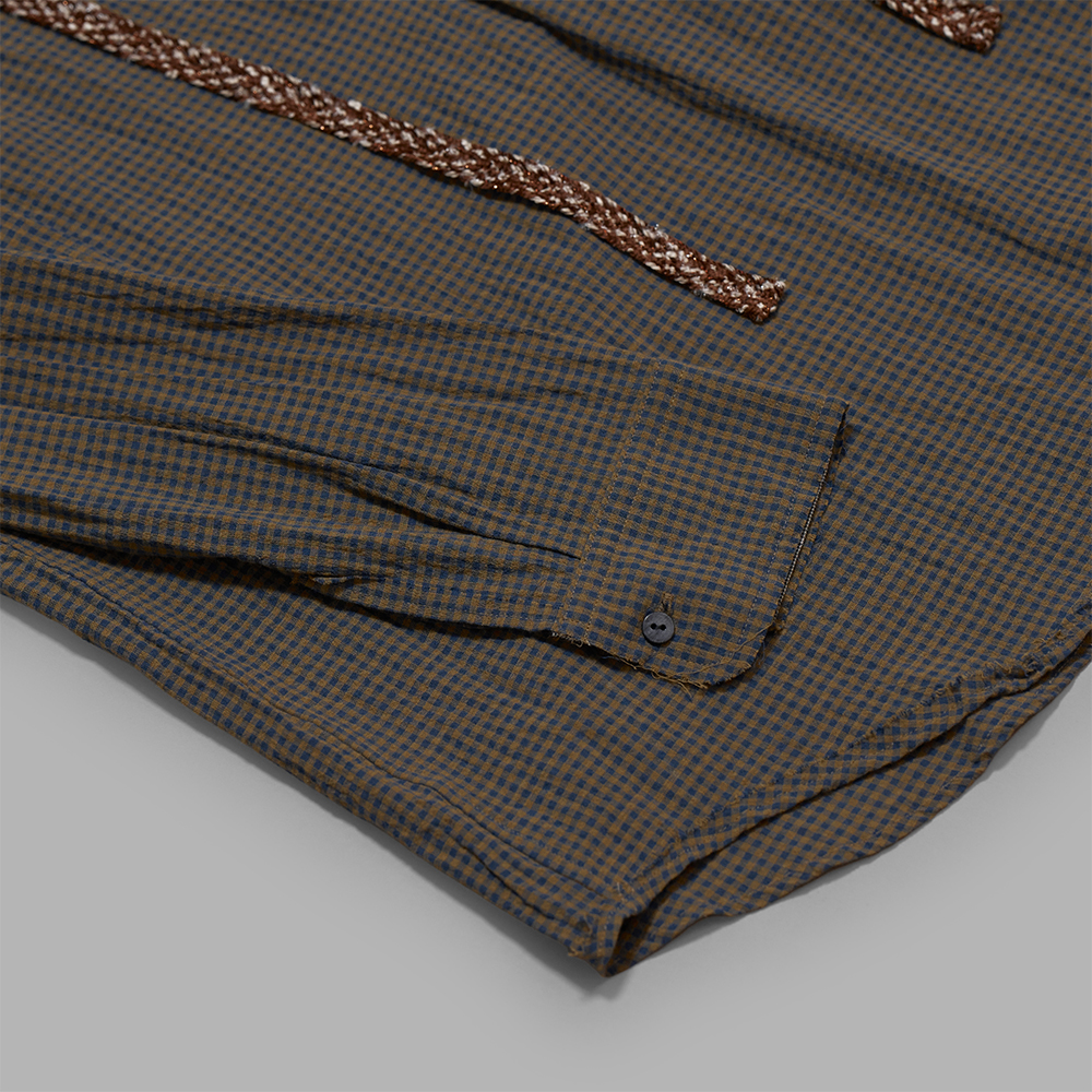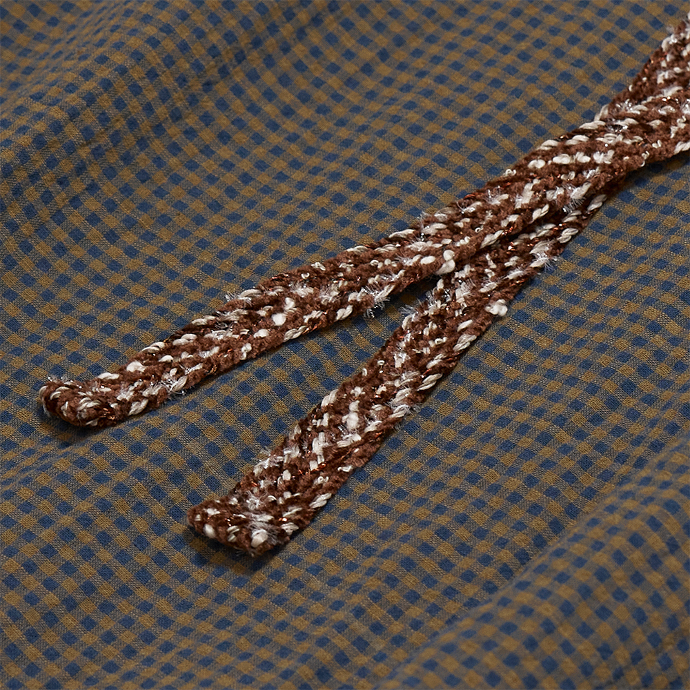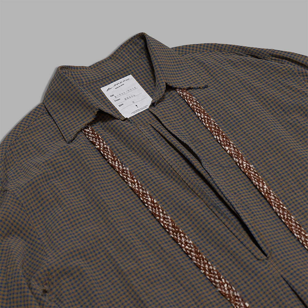 薄手ながら、生地の凹凸によって奥行きを感じさせるコットンのチェック素材です。カフス裏には別生地を配しており、軽く折り返しての着用も様になります。