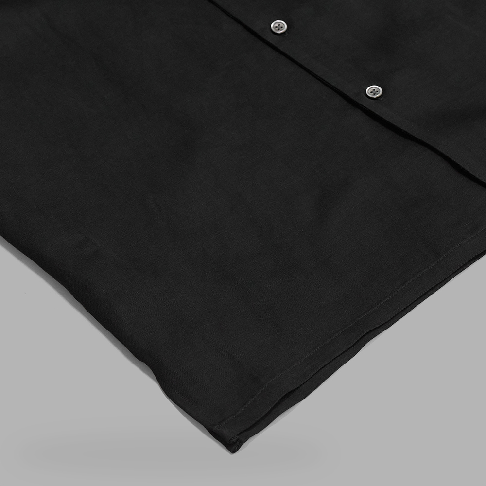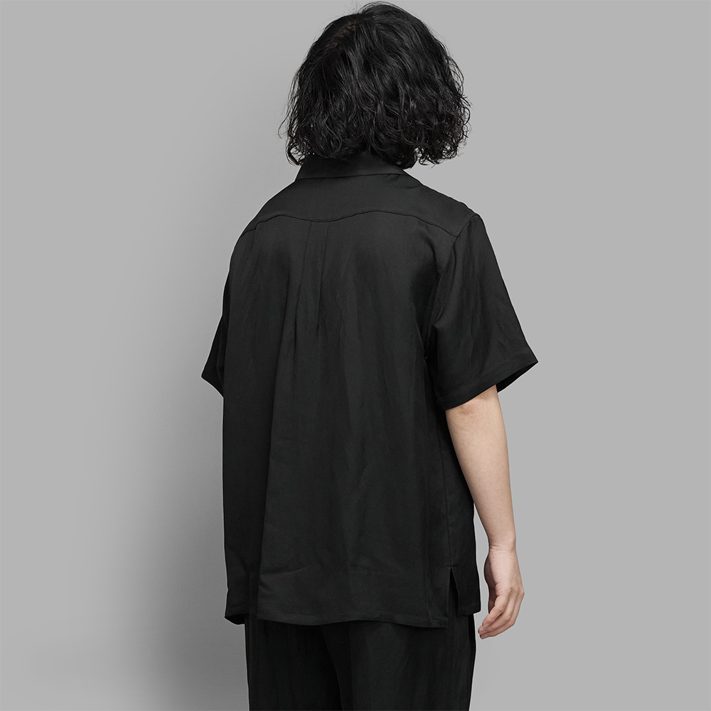 型は、全体的に程よくゆとりのあるサイズ感で製作された、オープンカラーの半袖シャツです。ベーシックなデザインですが、大きめの襟や、小ぶりな胸ポケットなどディテールを調整しているのもポイントです。また、サイドのスリットと前後差をつけた裾ラインにより、動きのある軽やかなシルエットに仕上げています。