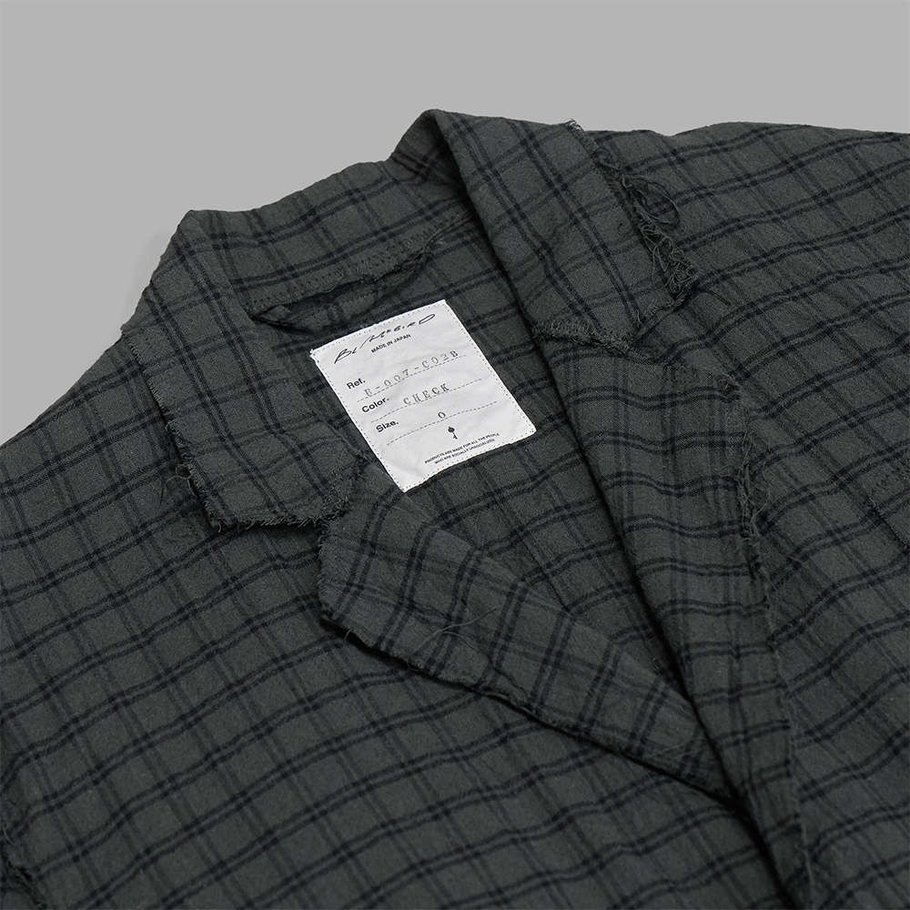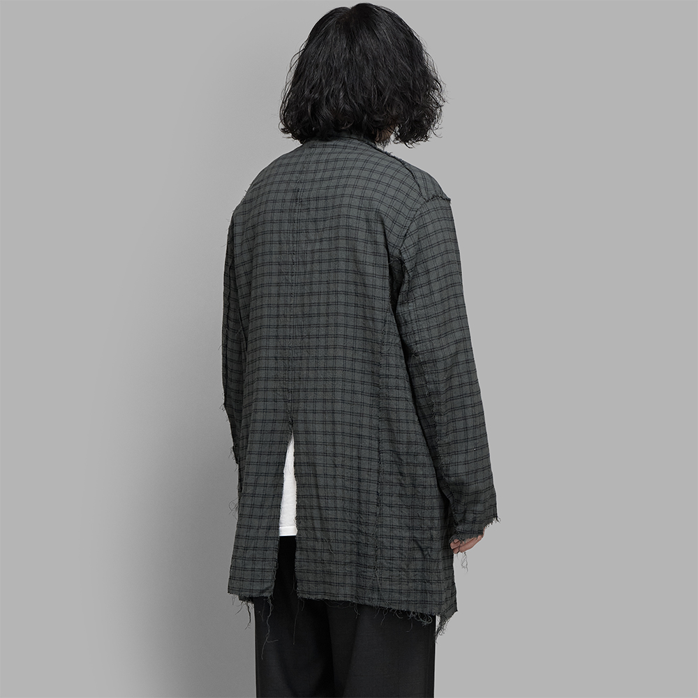 プロダクトの制作途中でとどめたような、未完成の美しさを感じさせる一着です。ゆとりのあるシルエットで、細身から太めまでさまざまなボトムスと合わせていただけます。
