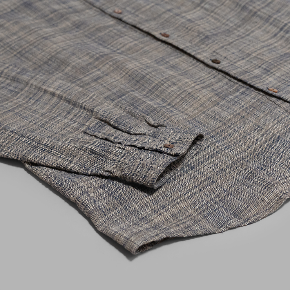 ミニマルなデザインながらも、手織りのようなふっくらとした質感や不均一な糸ムラによって、雰囲気の良い1着に仕上がっています。薄手で、凹凸による風通しも良いので夏場の着用に適したシャツです。