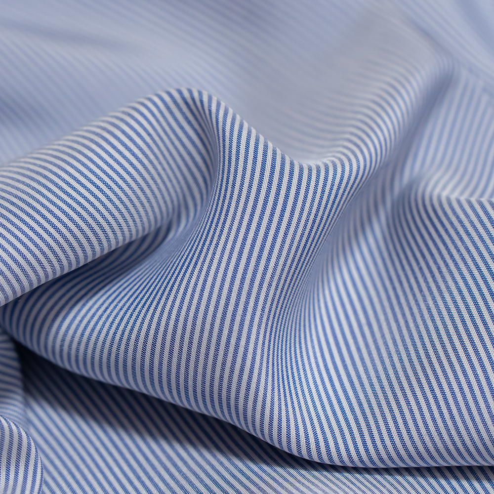 素材は、ブランドがイタリアのファブリックメーカーに別注して作製された、シルク素材のストライプ生地を使用しています。薄手の生地ですが、程よく落ち感があり、シルクならではの滑らかなタッチと品のある光沢感が特徴の生地です。