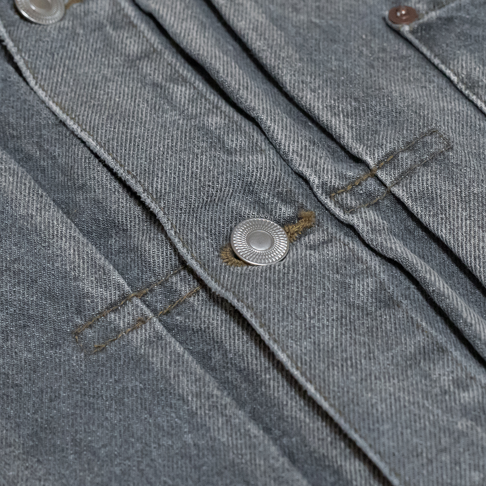 デザインは、低めのヨークの切り替え位置が特徴のユーロリーバイスの1st型がベースです。やや大きめの胸ポケットは、フラップを付けず、ステッチもシングルで、バランスを整えています。
