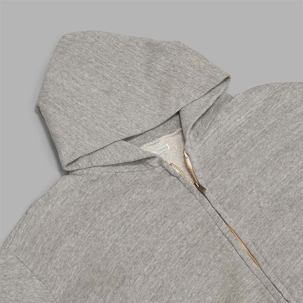 デザインは、60's前後のヴィンテージのZIPパーカをイメージしています。薄く伸びきって緩くなったリブをあえて再現し、崩れたシルエットに設計していることが特徴です。4本針ミシンで縫い付けられた腰ポケットも、ヴィンテージならではのディテールです。