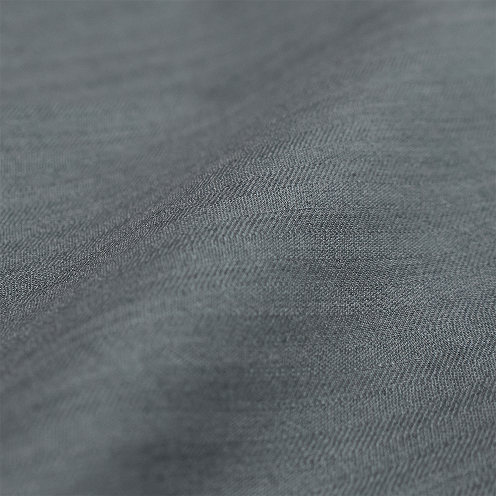 素材は、ウールとモヘアを使用しています。程よいハリとサラッとした質感、上品な光沢によるドレープが特徴的な素材となっています。異なる配色の糸を組み合わせ、ヘリンボーン柄で織り上げることで、奥行きと同ブランドらしい独特なニュアンスカラーの生地に仕上がっています。