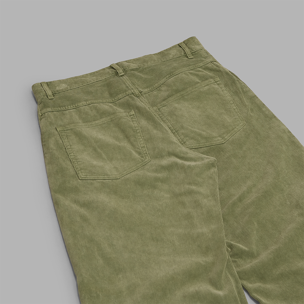 エジプト産の超長綿フィンクスコットンを贅沢に使用したコーデュロイ素材を使用しています。縫製後に製品染めを施しておりますが、良質な原料による、しなやかさや滑らかなタッチは損なわれずに、ムラを感じる独特な色味を表現しています。