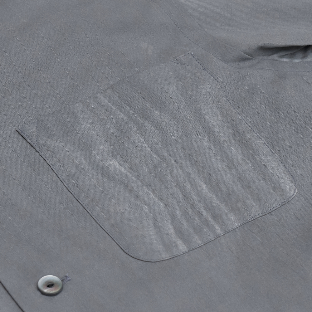 型は1950年代のアメリカ製のシャツをベースにしたオープンカラーシャツです。身幅はややゆとりを持たせ、タックインしてもバランスの良い丈感、シルエットにしています。