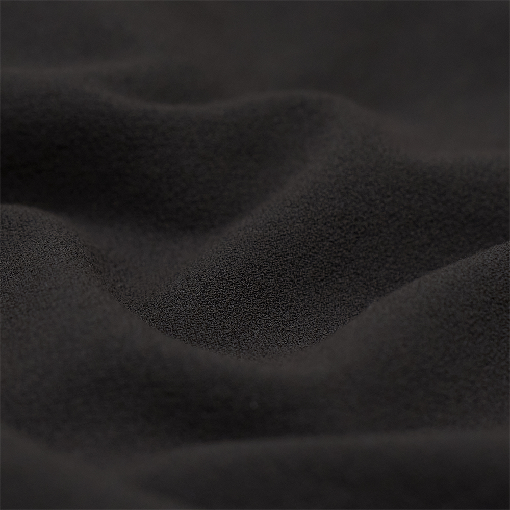 経糸・緯糸ともに撚り方向の異なるオーガニックコットンの強撚糸を2本ずつ交互に用い、尾州産地で織り上げたオリジナルの縮緬生地です。撚りの方向が異なる糸を組み合わせることで、織り上げた際に糸がわずかに戻ろうとする力が働き、生地表面に細やかなシボが生まれ、生地に通気性と清涼感をもたらし、肌離れの良いドライタッチな質感を生み出しています。
